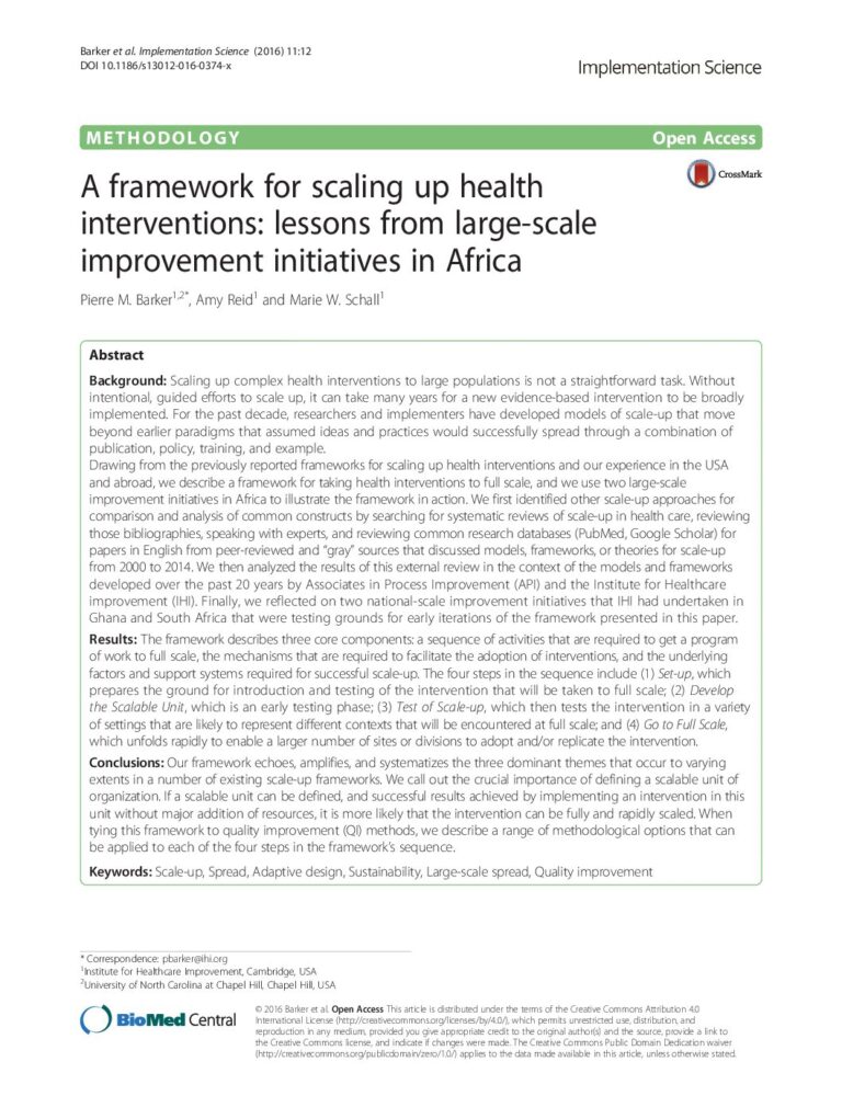 A Framework for scaling up Health Interventions: Lessons