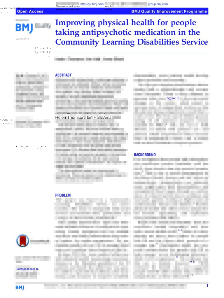 Improving physical health for people taking anti-psychotic medication in the Community Learning Disabilities Service (BMJ Quality)