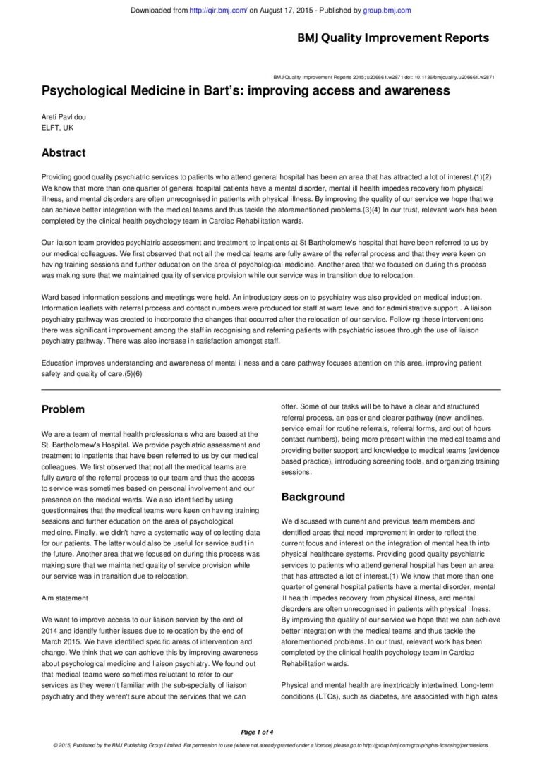 Psychological Medicine in Bart’s: improving access and awareness (BMJ Quality)