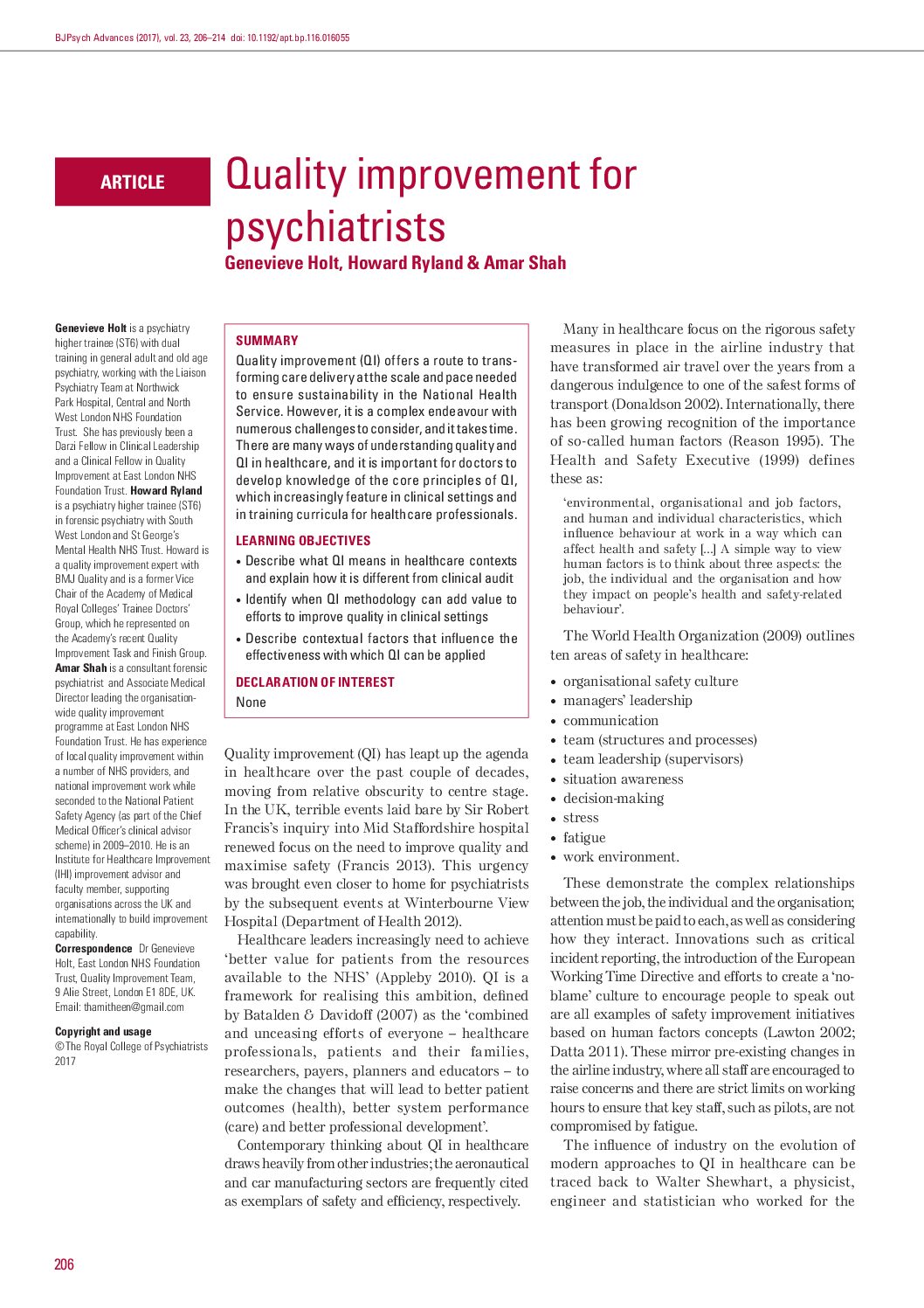 Quality improvement for psychiatrists
