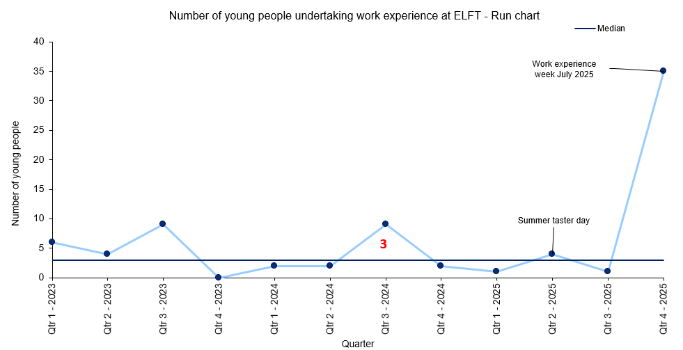 Figure 3. Number of young people undertaking work experience at ELFT – Quarterly