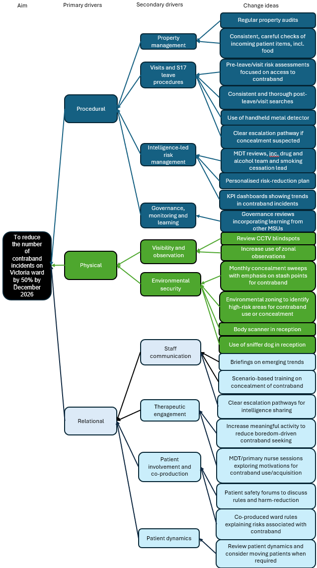 Figure 2. Driver diagram showing change strategy for reducing contraband on Victoria ward.